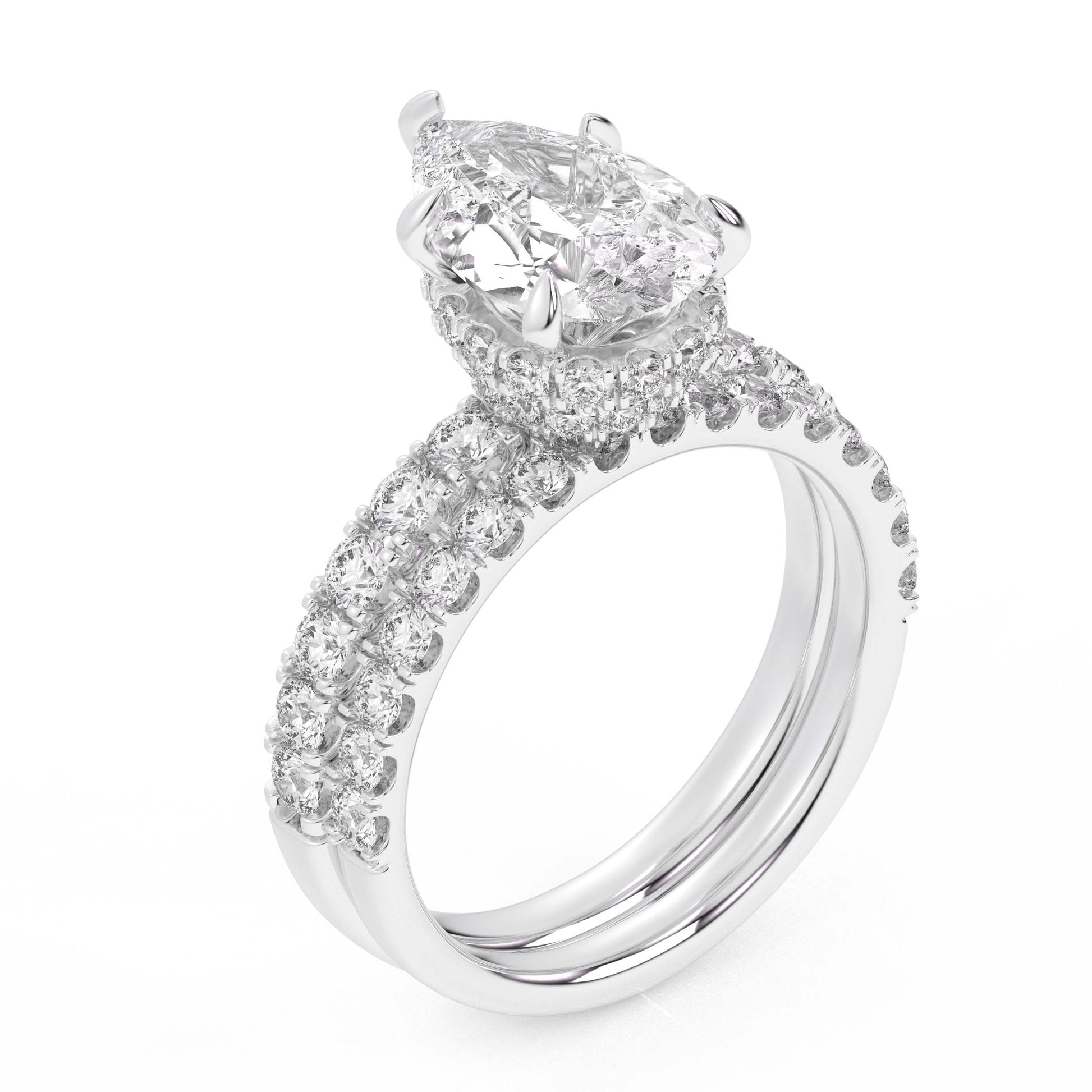 14K 4.38CT Certified Lab Grown Diamond Bridal Set Double hidden halo
