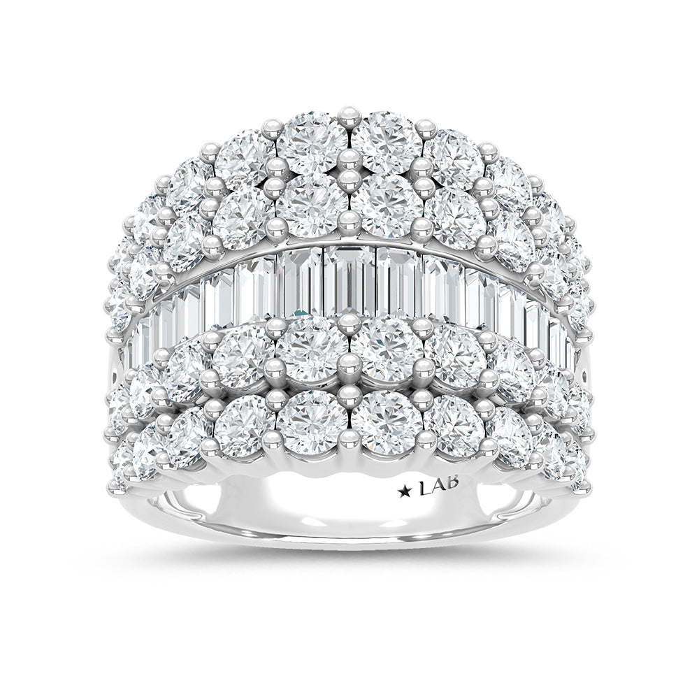 14K White Gold Lab Grown Diamond 4 Ct.Tw. Round and Baguette Fashion Ring