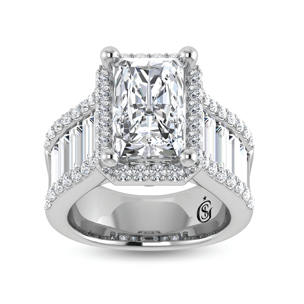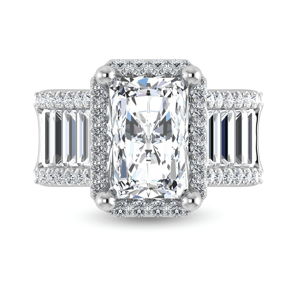 14K White Gold Lab Grown Diamond 8 Ct.Tw. Straight Baguette Shank Engagement Ring (Center Radiant)
