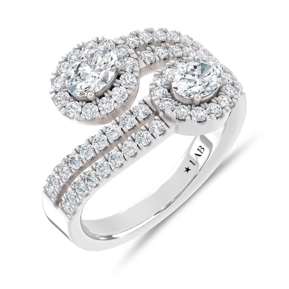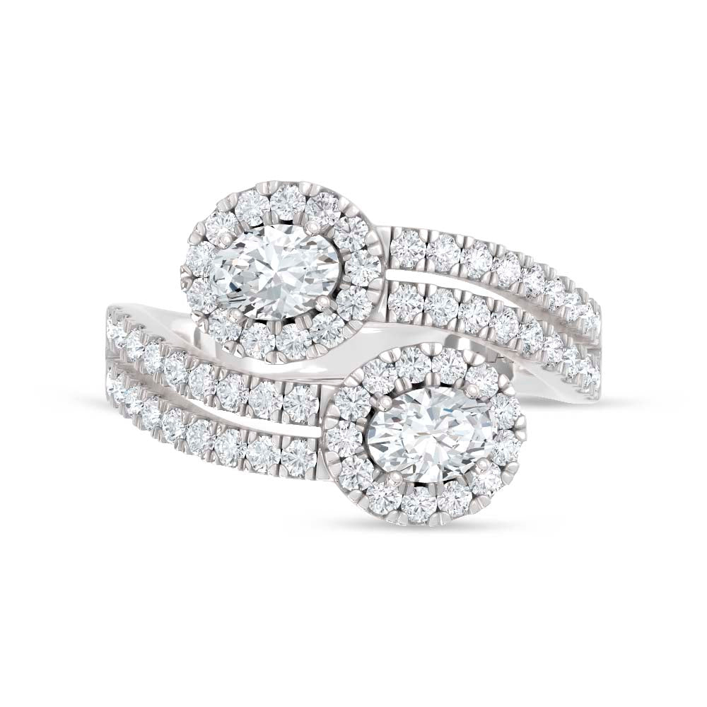 14K White Gold Lab Grown Diamond Round and Oval 1 1/2 Ct.Tw. Fashion Ring